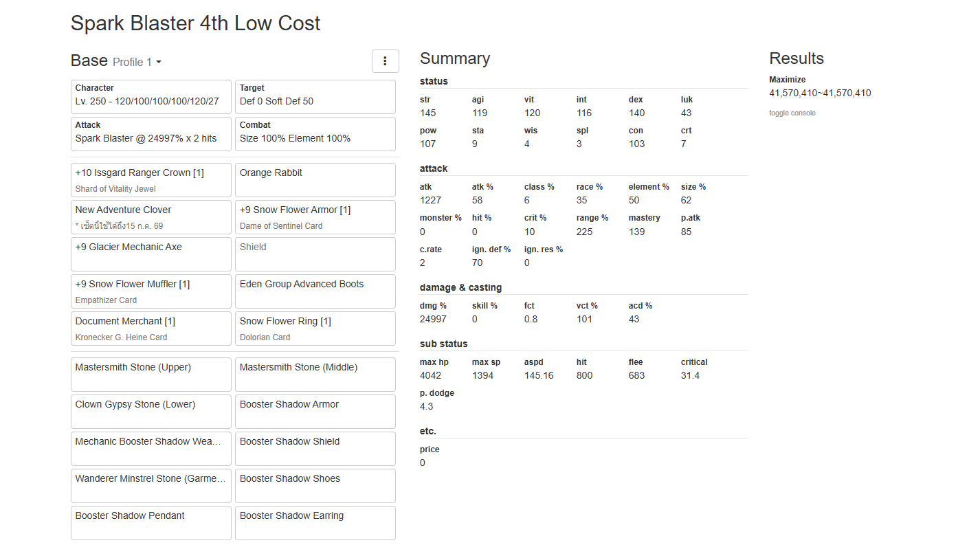 - ไม่เหมาะกับงบน้อย เพราะเงื่อนไขที่ต้องทำค่อนข้างเยอะ ต้องทำ VCT 100%, CRI 170+, CRI DMG XX%, ASPD 190+, Ignore DEF 100%